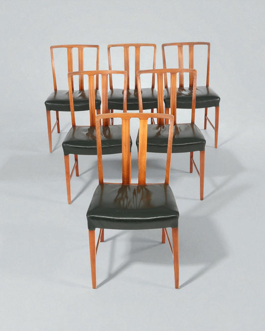 1947 Peder Pedersen Set of 6 Solid Wood Dining Chairs in Black Leather Upholstery