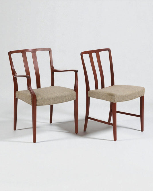 1940s Agner Christoffersen Set of 6 Solid Dining Chairs, Fabric Upholstered