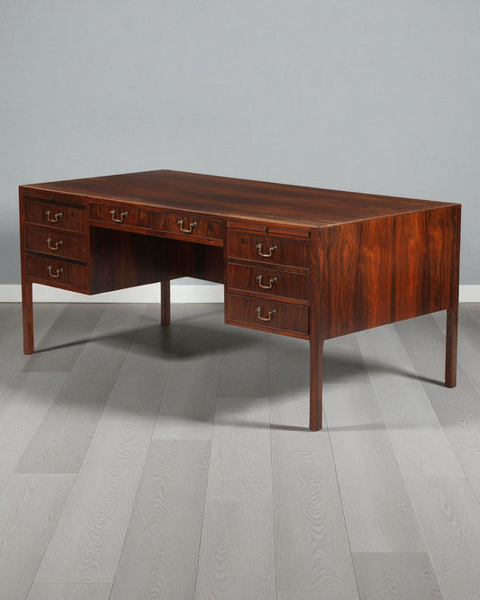 1950s Gustav Bertelsen desk with brass shoes and six drawers