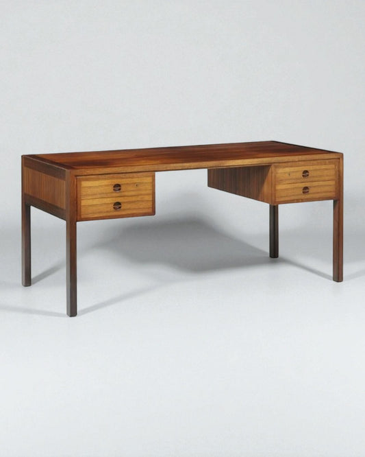Danish cabinetmaker: A freestanding nutwood Art Deco desk: 1920–30s