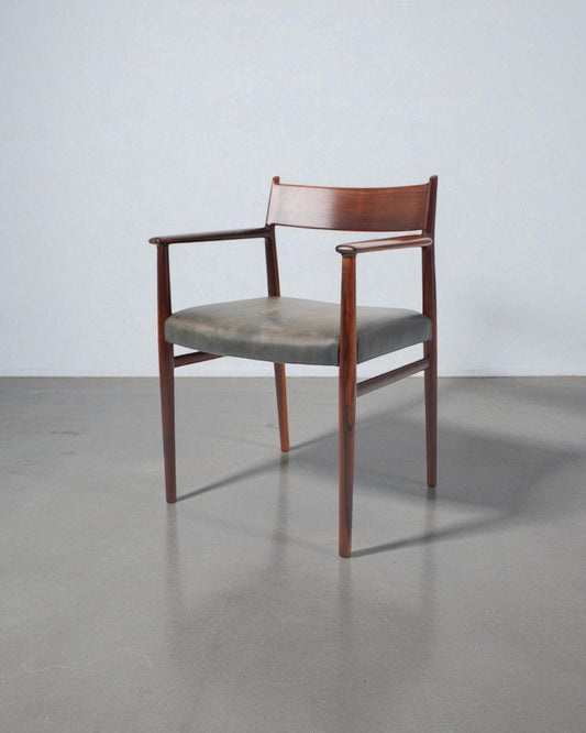 Arne Vodder Vintage Danish Modern Rosewood Dining Chair with Arms and Leather