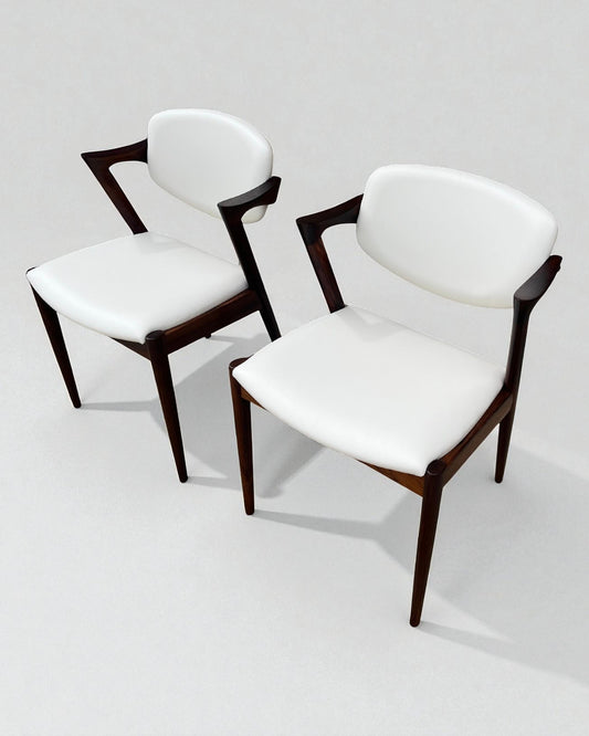 Kai Kristiansen Model 42 Chairs Re-upholstered in Cream Leather