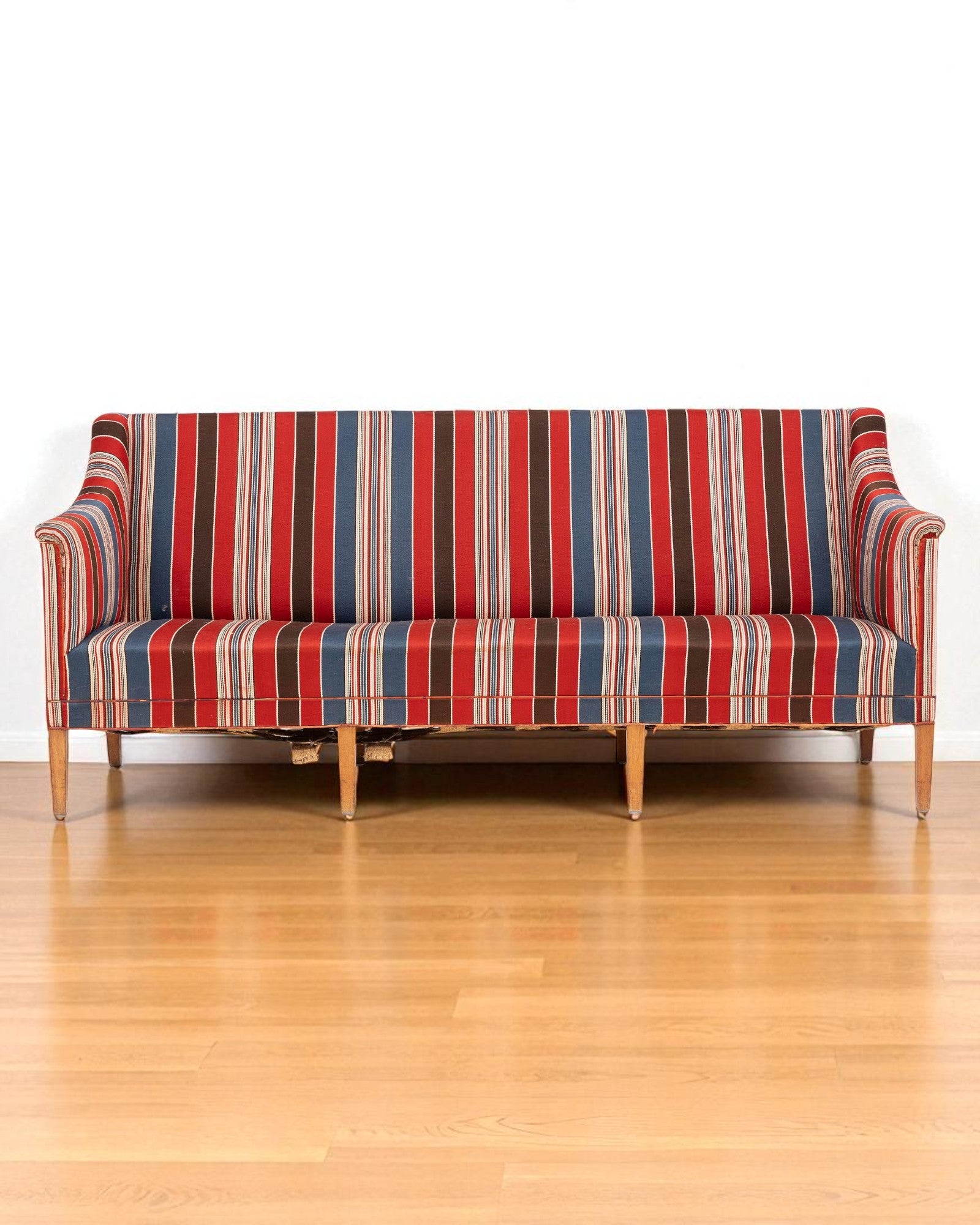 1940s Kaare Klint Three Seater Sofa, Hardwood Legs & Striped Wool Upholstery