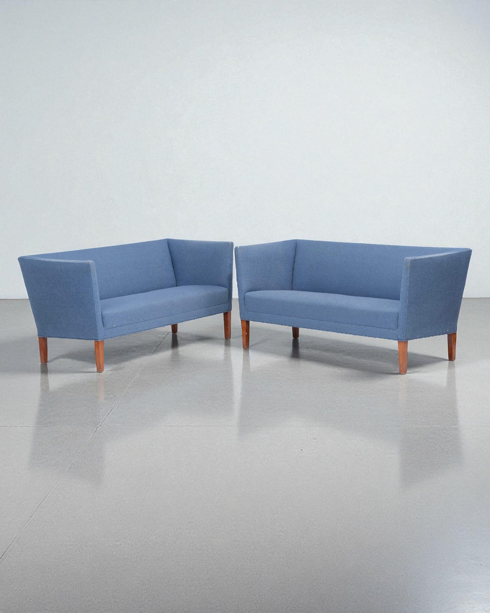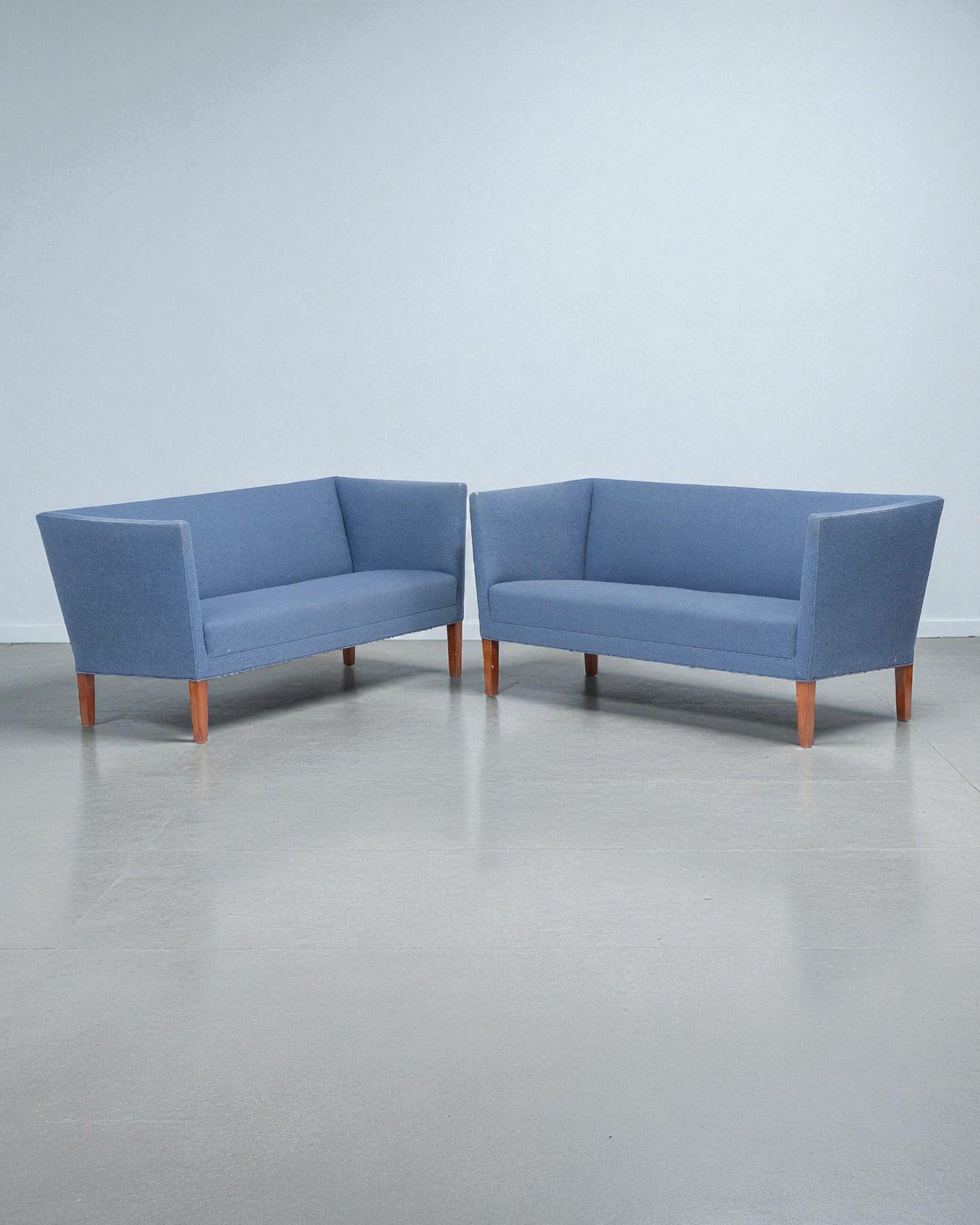 1960s Grete Jalke Sofas With Oak Legs and Blue Wool Upholstery