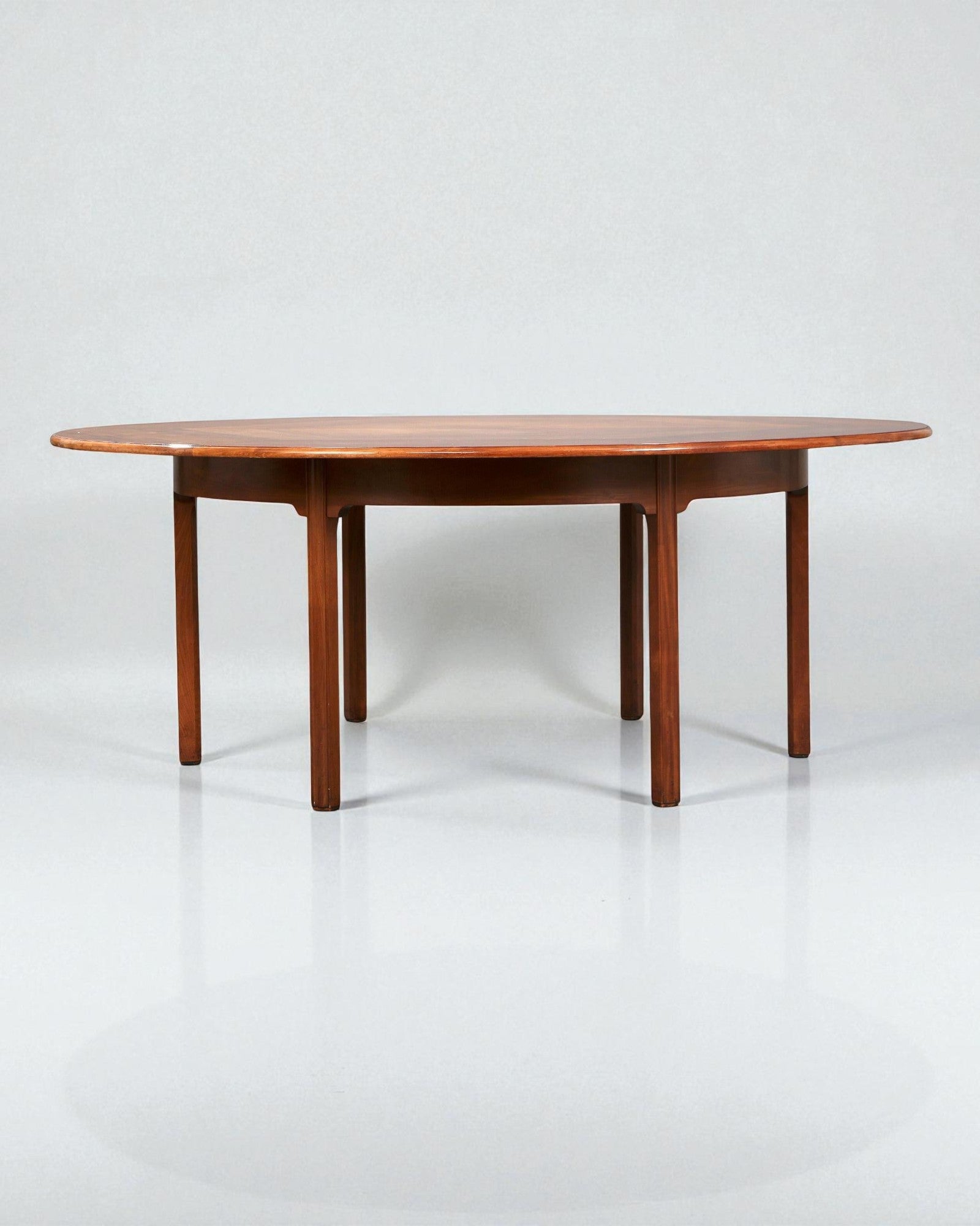 1960s Rud Rasmussen large circular “China table” of mahogany with sixlegged frame. Made by Rud Rasmussen cabinetmakers. H. 77 cm. Diam. 200 cm.