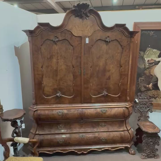DUTCH WALNUT LINEN PRESS OF BOMBE FORM Early 20C