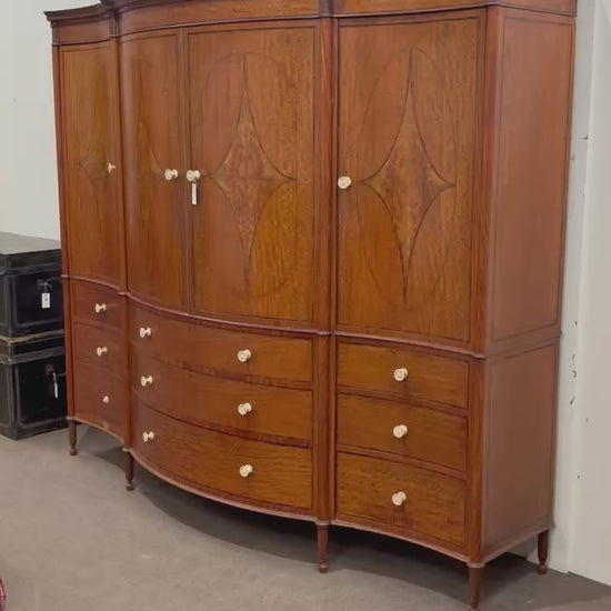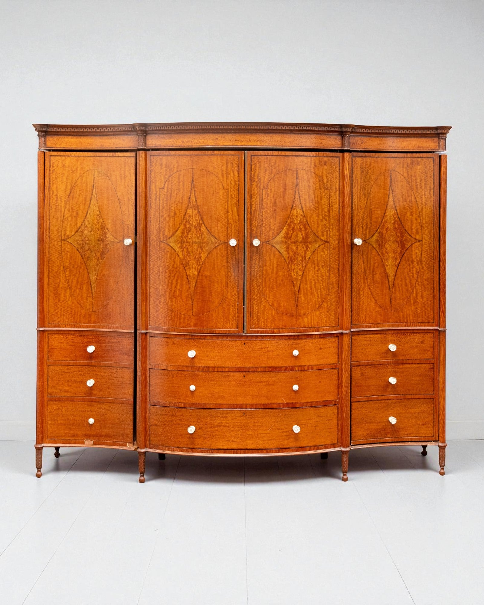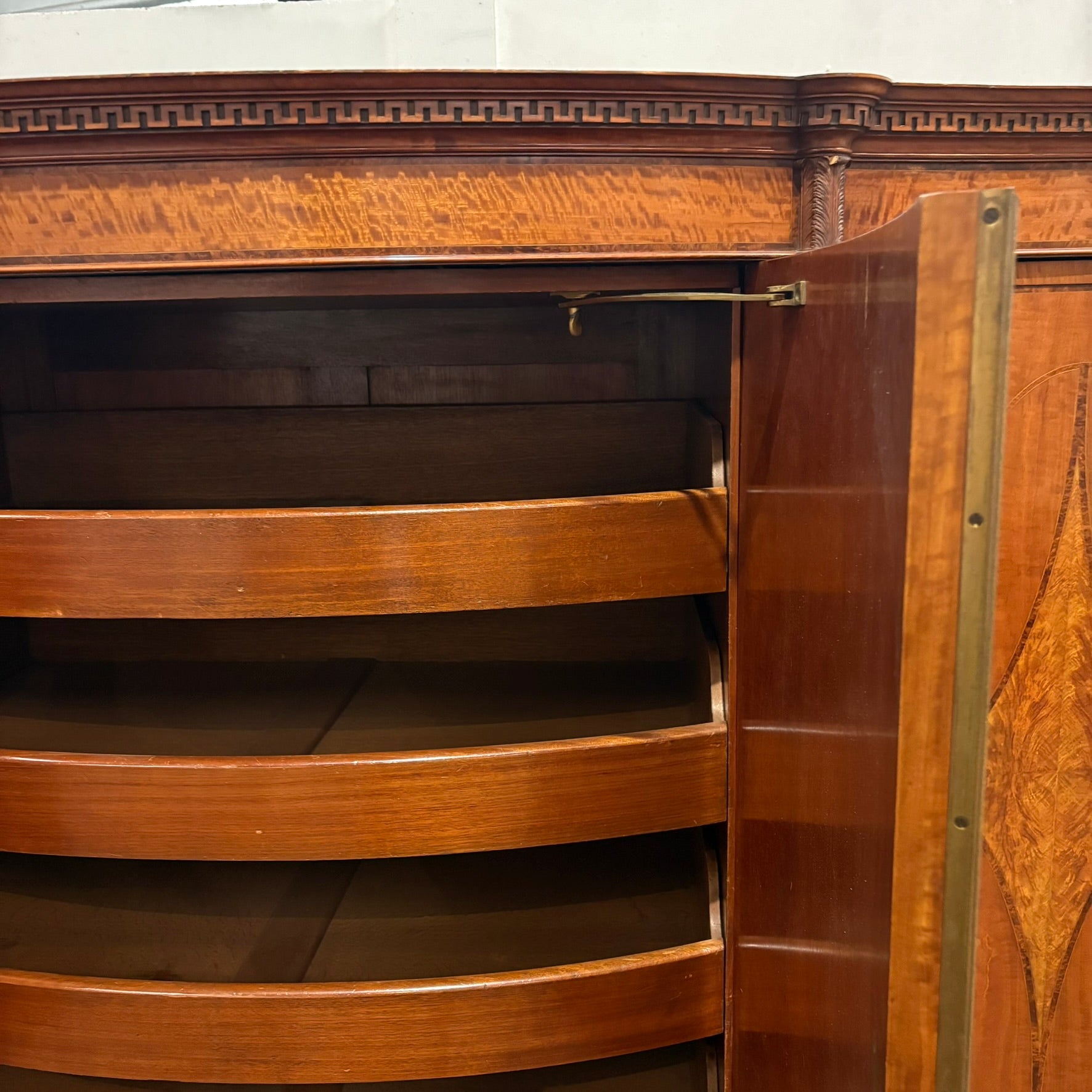 EDWARDIAN SATINWOOD INLAID AND CROSSBANDED SERPENTINE FRONTED WARDROBE