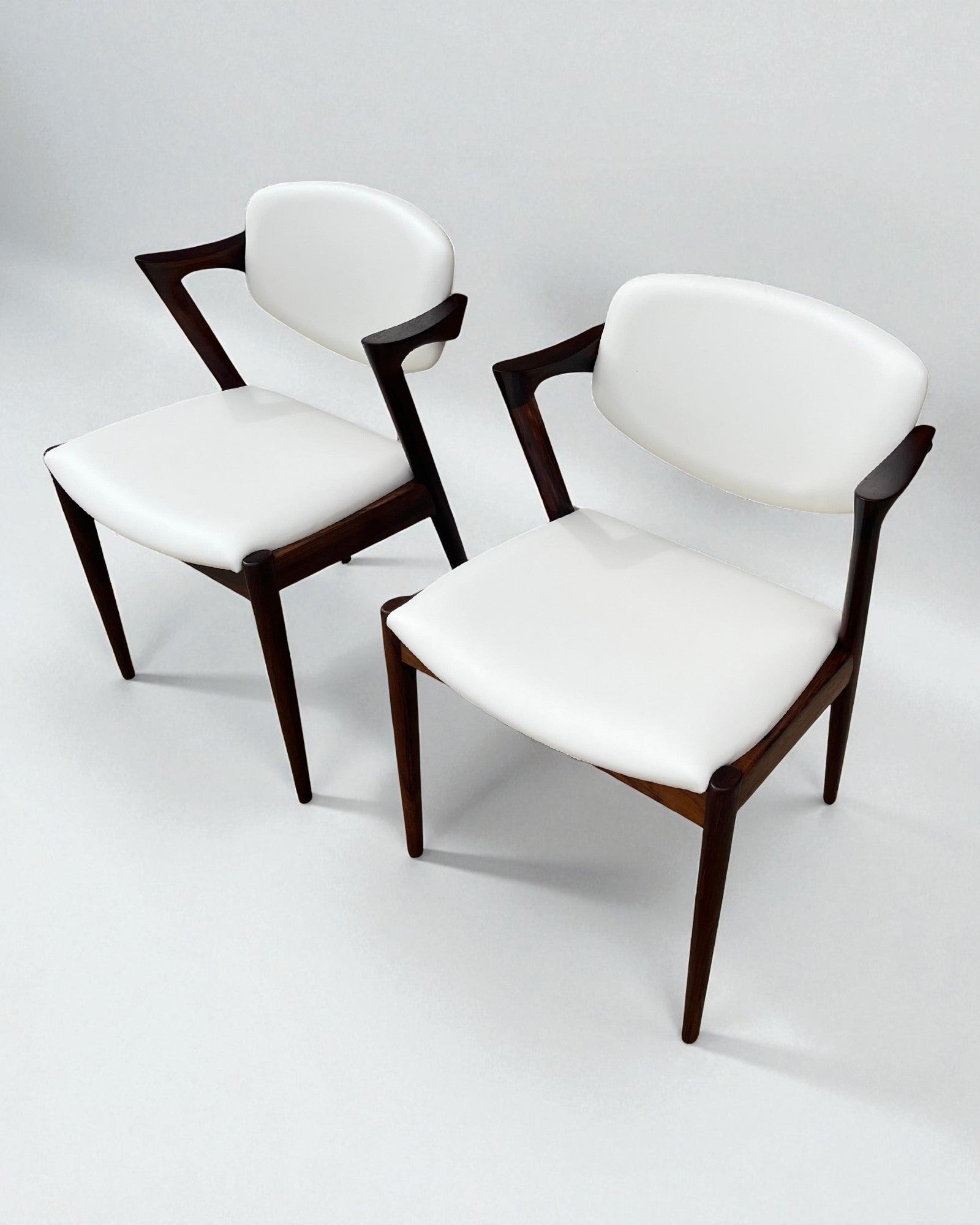 Kai Kristiansen Model 42 Chairs Re-upholstered in Cream Leather