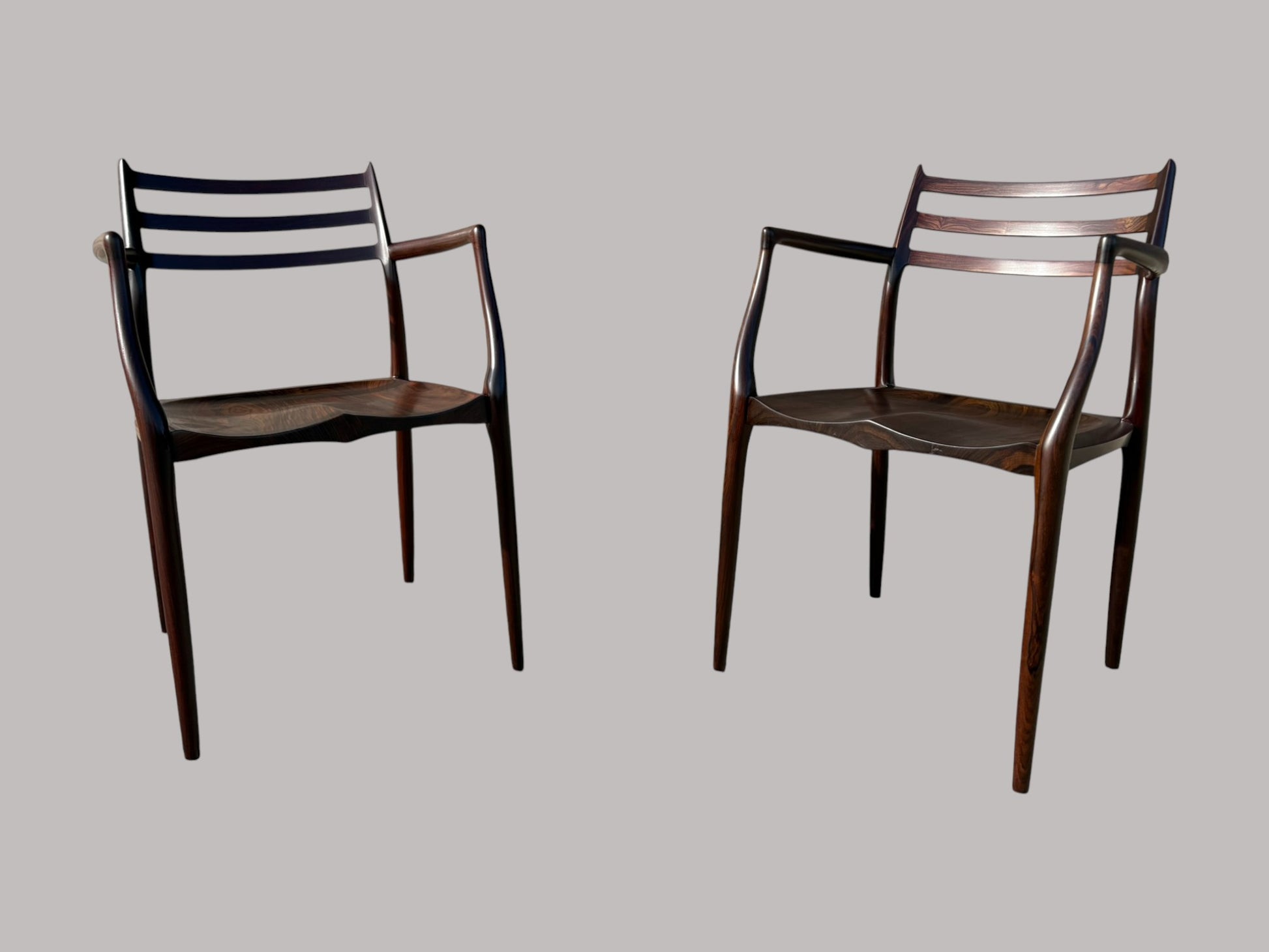 The 50th Anniversary Edition of Model 62 by Niels Otto Moller was agreed to be made in 2012 by Jonne Moller, the son of Niels Otto Moller and current owner of JL Mollersmobelfabrik, and Paere Dansk. The original Model 62 was designed in 1962 by Niels Otto Moller with leather, fabric or cord seats. Oliver Olsen, owner of Paere dansk, designed a seat made of 100% solid rosewood.