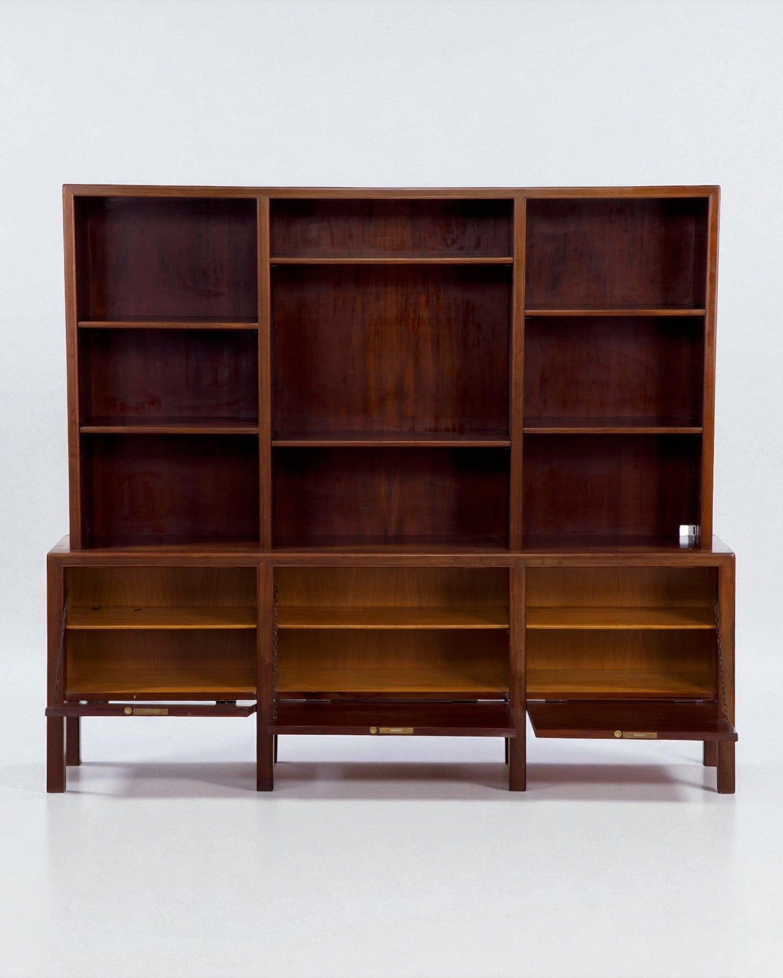 Pair of 1930s Frits Henningsen Hardwood Office Units with shelving over cabinets