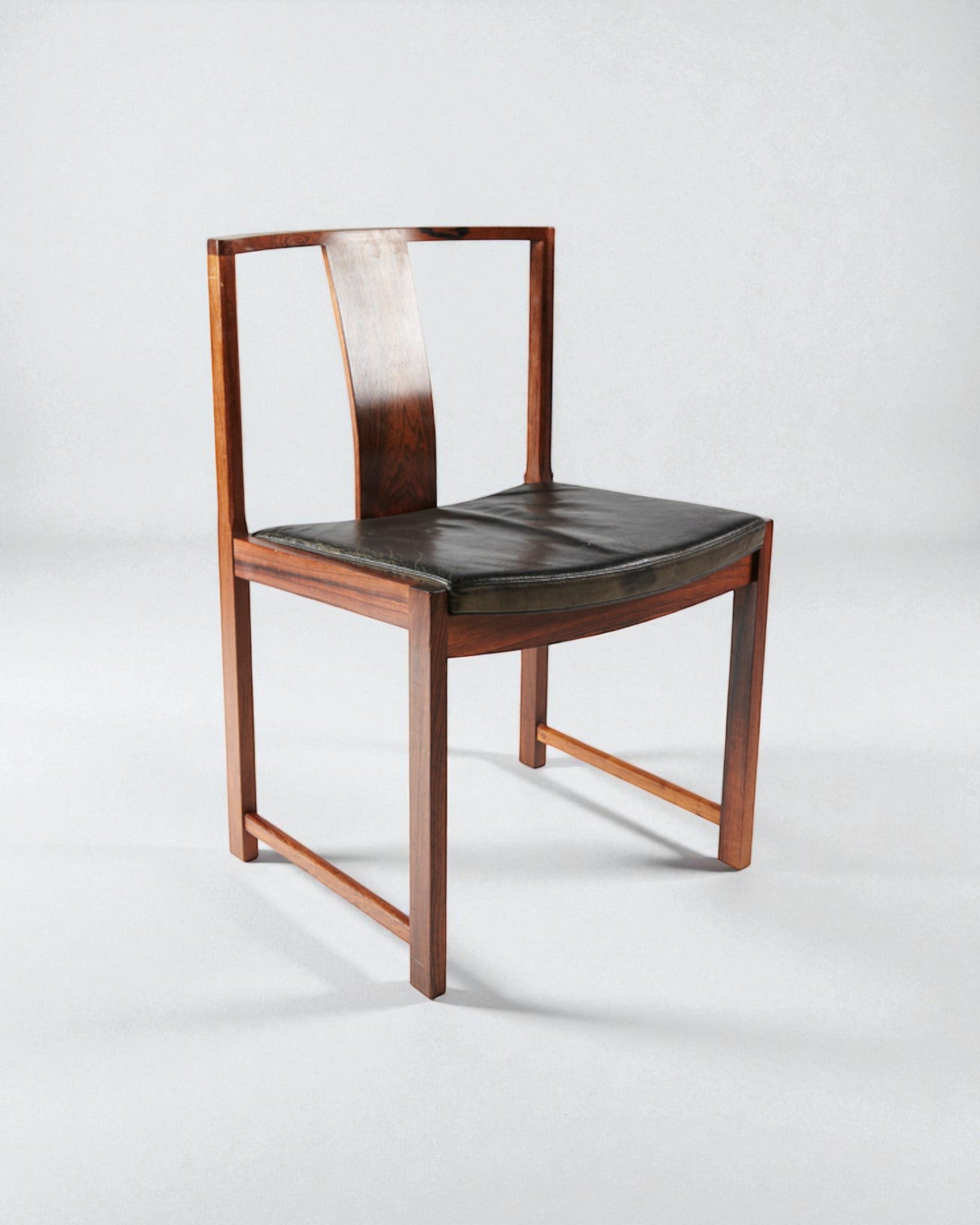 Paere Dansk holds in stock a two sets of 6 vintage rosewood dining chairs designed by Steen Eiler Rasmussen about 1956 a...